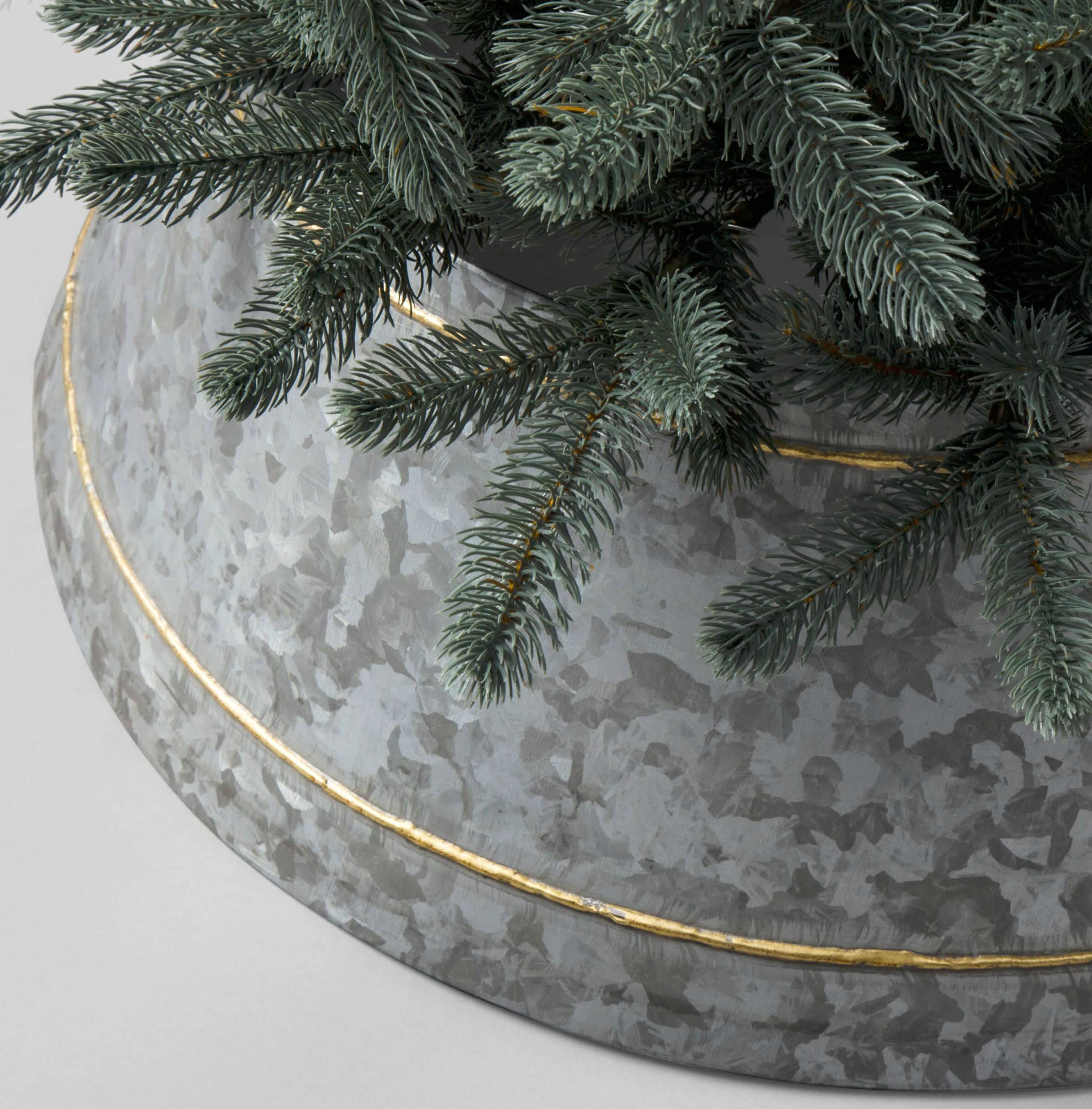Gif. The shiny collar complements just about any style or size tree. The metal construction helps it last for years.