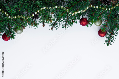 Images. Christmas background with decorated branches of christmas tree. Look for a tree whose branches are upright and perky.