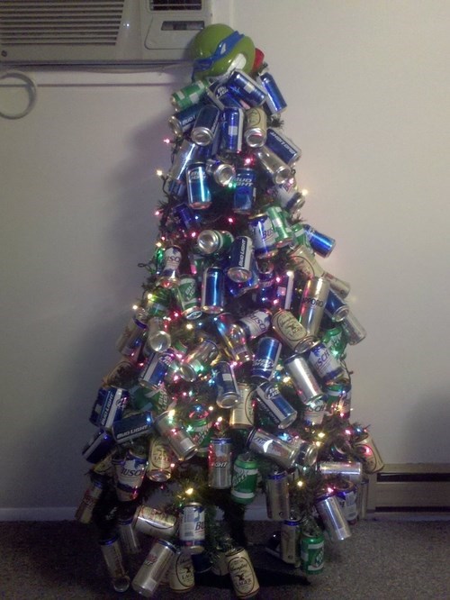 View Christmas Tree Decorated With Beer Cans