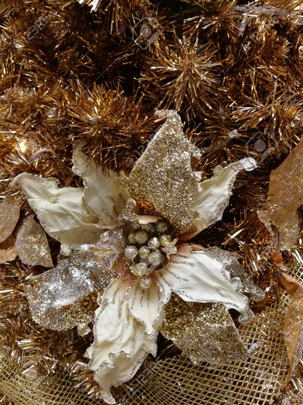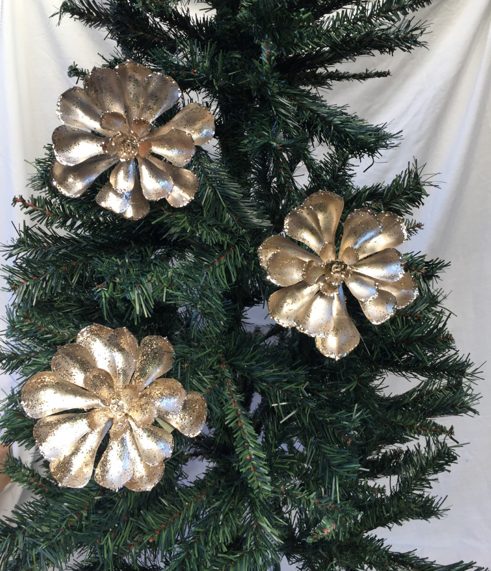 View Christmas Tree Flower Decorations Gold