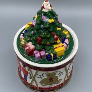 Spode christmas tree cookie jar toy solders, teddy bear santa on lid large.